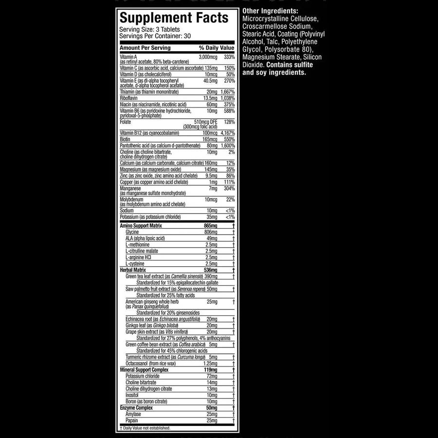 هو مكمل متعدد الفيتامينات والمعادن مخصص بالأساس للرياضيين، ولاعبي كمال الأجسام، وكل شخص أسلوب حياته نشط ويبحث عن دعم يومي للصحة والطاقة. المنتج من شركة ماسل تك العالمية والمتخصصة في مكملات الرياضيين.