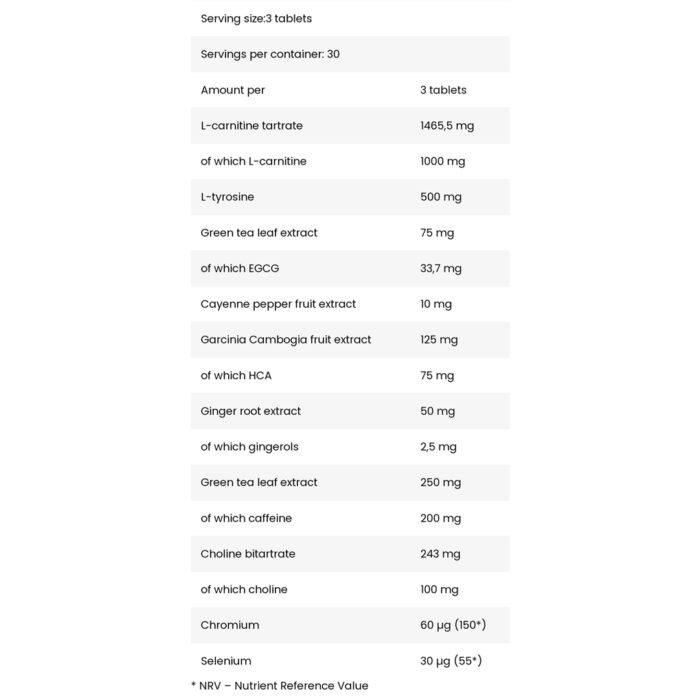 مع كل حصة، ستحصل على مزيج من L-كارنيتين، مستخلص الشاي الأخضر، الكافيين، الجينجرول، والكروميوم، مما يساعد في تسريع عملية الأيض وتقليل الشهية وزيادة التركيز.
